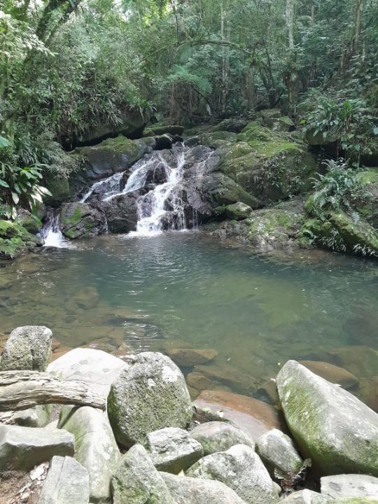 Nesta aventura, iremos subir até 260 metros de altitude, em 1,2 km de trilhas morro acima, chegando ao ponto mais belo ponto de observação das praias do Rosa em Imbituba e Praias de Garopaba. Possibilidade de avistamento de muitos pássaros e pequenos animais silvestres, que rodeiam o pico da Pedra Branca. Após o encantamento desta linda vista, ainda iremos nos refrescar nas corredeiras de uma pequena cachoeira.